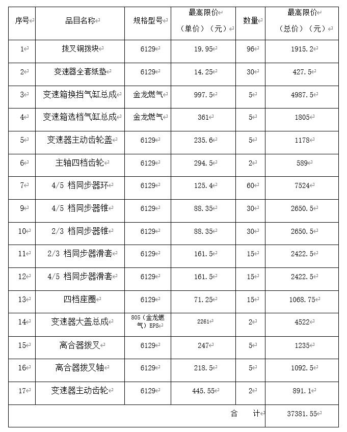 變速箱配件比價(jià)采購(gòu)公告 一、采購(gòu)內(nèi)容